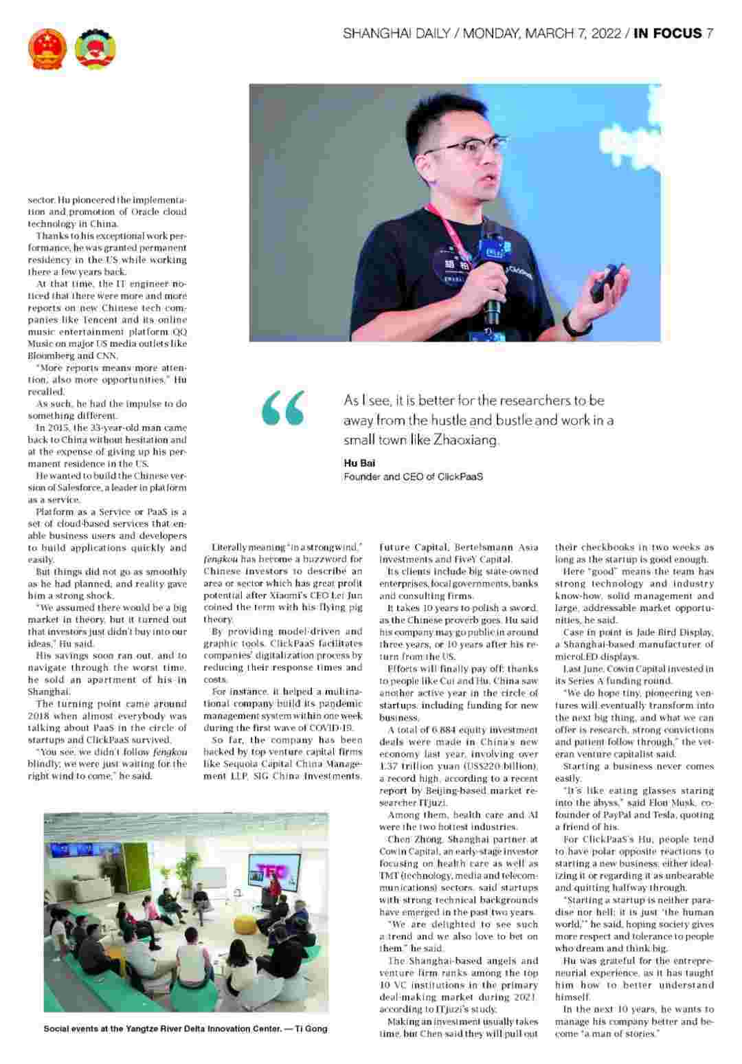 《上海日报》专访钱能钱包创始人、、、CEO胡柏,,,探究其创业背后的故事!!!